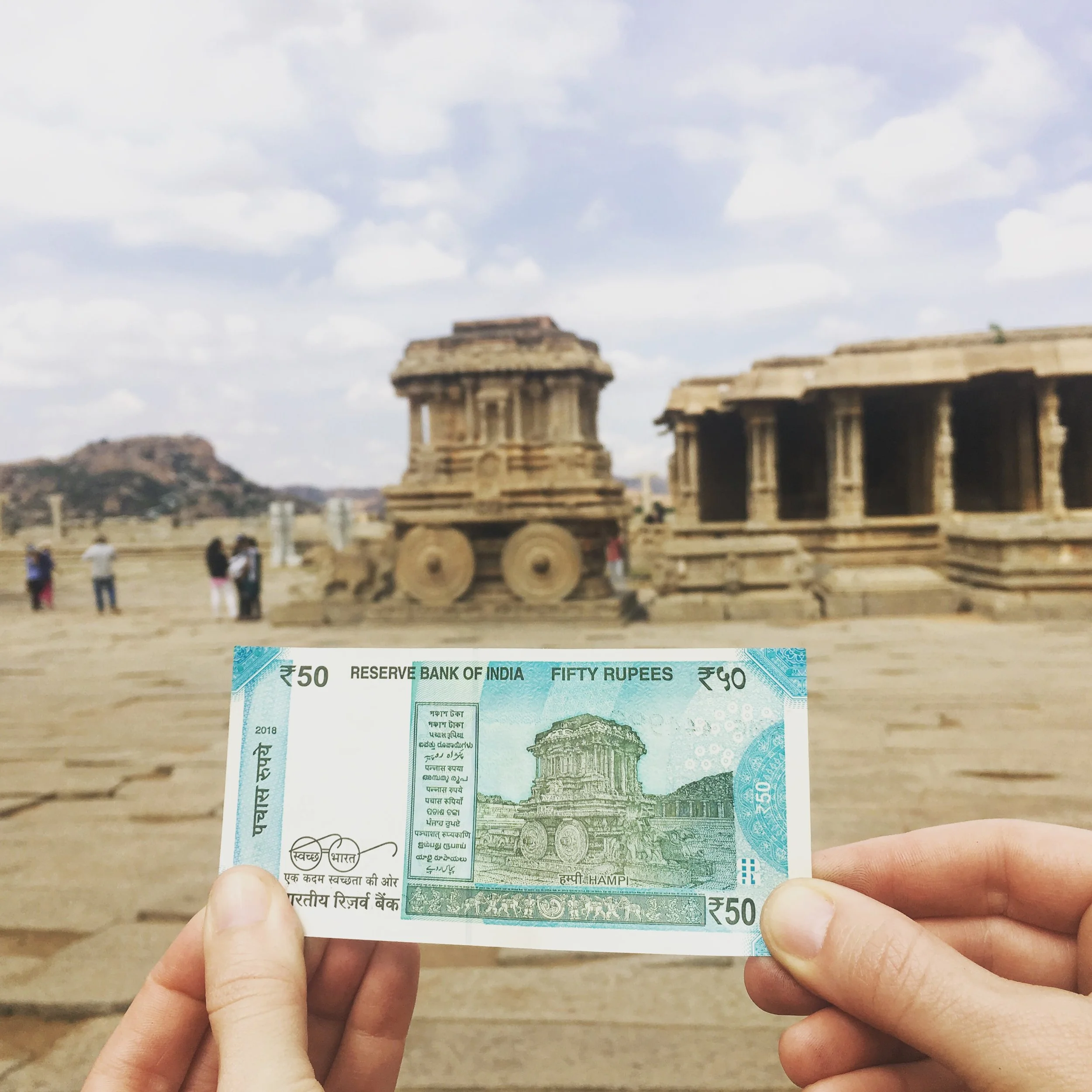Sadly, we moved on. Away from the temple, the crowds thinned and we could explore the ruins. We walked along the banks of the river, clamoring over boulders and finding all kinds of little temples and carvings tucked into the rocks (Dad, it was reminiscent of our time in Dinosaur, looking for petroglyphs). The last stop of the day was the Vitthala temple - dedicated to the Hindu god, Krishna. Similar to the first temple we visited, not much is known about when it was built or who built it. It’s extremely well known, though, as the stone chariot in the temple’s courtyard is featured on the 50 rupee note.